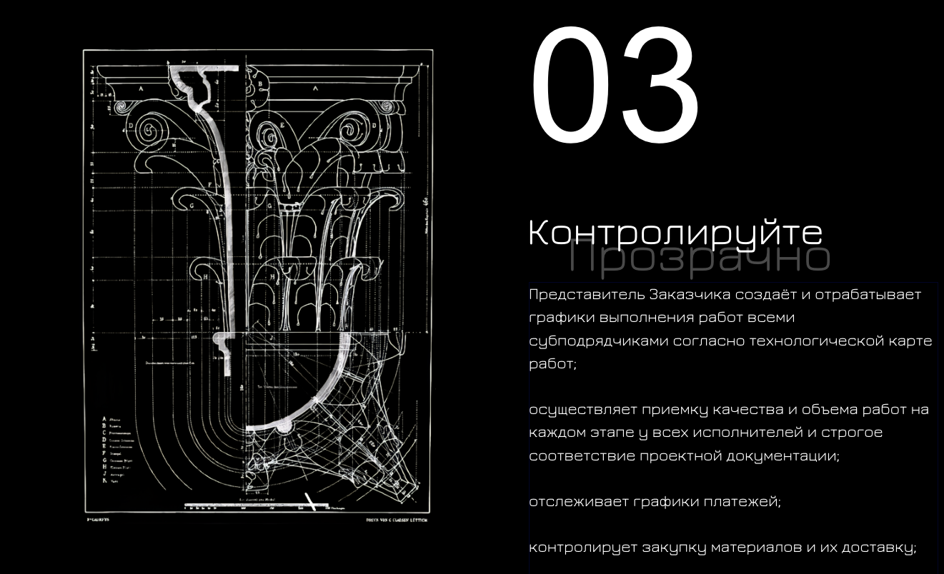 осуществляет приемку качества и объема работ на каждом этапе у всех исполнителей и строгое соответствие проектной документации;