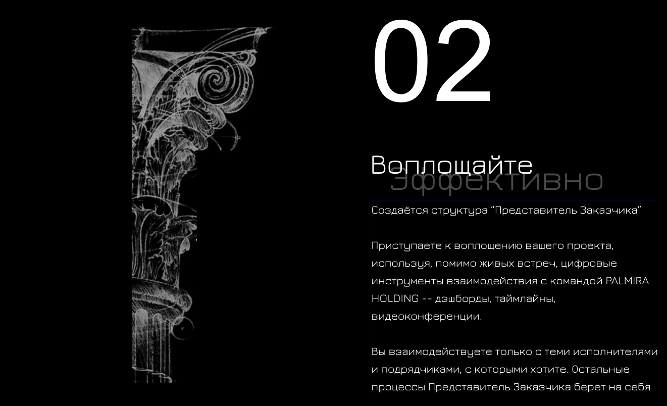 С PALMIRA HOLDING вы узнаете о всем спектре новых технологий строительства, получите экспертные предложения по уменьшению сроков и бюджета затрат
